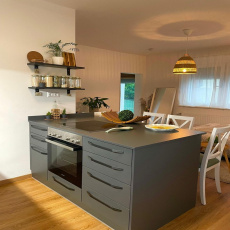 Auf rund 29 m² erwartet Sie ein heller Wohn-, Ess- und Schlafbereich, der durch seine geschickte Raumaufteilung ein angenehmes Wohngefühl vermittelt. Die moderne Küche wurde mit viel Liebe zum Detail gestaltet und bietet alles, was man für den Alltag braucht – funktional, stilvoll und kompakt zugleich.
