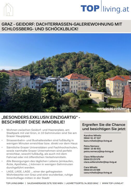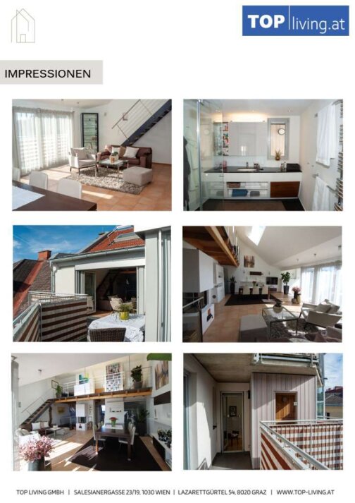 Diese exklusive Galeriewohnung mit Dachterrasse und Balkon in gefragter Wohnlage mit Blick auf den Grazer Schlossberg und den Grazer Hausberg Schöckl befindet sich in Geidorf.