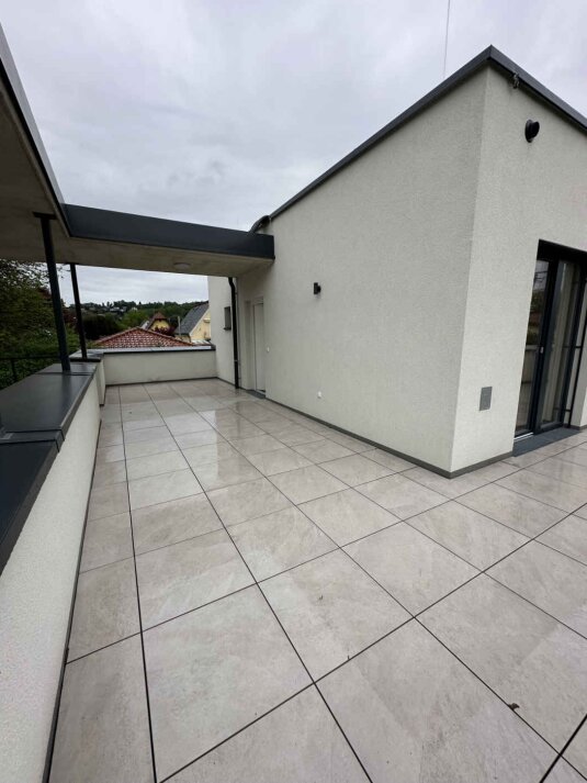 Auf rund 71,60 m² Wohnfläche überzeugt die Wohnung mit einem offen gestalteten, lichtdurchfluteten Wohn-Essbereich und direktem Zugang zur außergewöhnlich großen Westterrasse mit ca. 52,83 m². Diese großzügige Außenfläche stellt einen wesentlichen Mehrwert dar und erhöht die Vermietbarkeit sowie die erzielbare Miete deutlich.