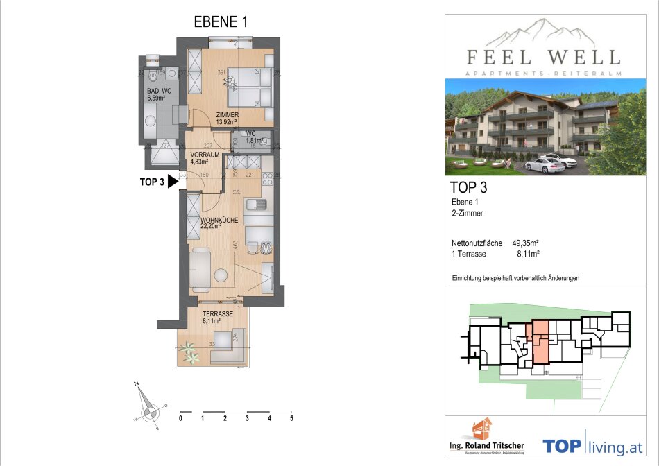 Das Projekt überzeugt durch die gelungene Verbindung von modernem alpinem Design und traditionellem Flair. Jede Wohnung besticht durch hochwertige Materialien sowie großzügige, lichtdurchflutete Räume, die ein behagliches Wohngefühl schaffen.