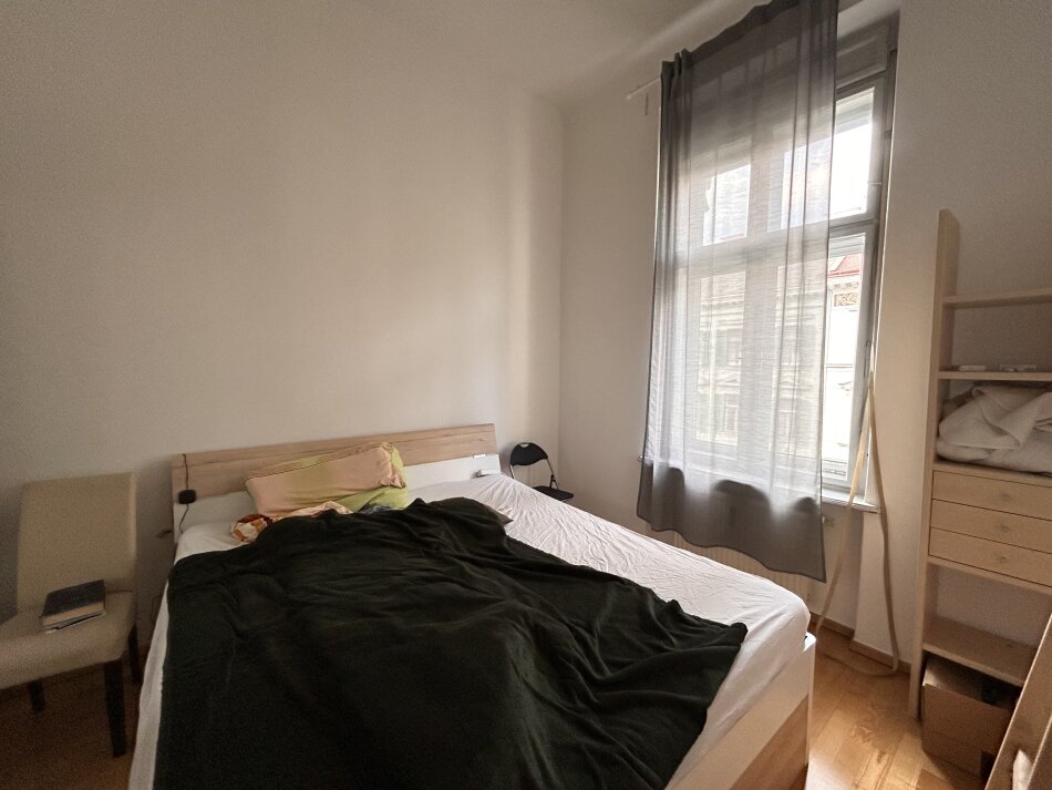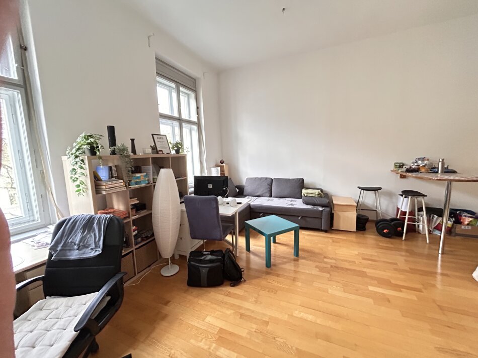 Der typische Altbaucharme zeigt sich in der großzügigen Raumhöhe, eleganten Stuckdecken, klassischen Flügeltüren und großen Fenstern, die für eine helle und freundliche Atmosphäre sorgen. Die Raumaufteilung umfasst ein geräumiges Wohn-Esszimmer, ein gemütliches Schlafzimmer sowie eine Einbauküche mit Elektrogeräten. Direkt angrenzend bietet ein praktischer Abstellraum zusätzlichen Stauraum. Das moderne Badezimmer ist mit einer Badewanne ausgestattet, und ein einladender Vorraum rundet das Raumkonzept ab.