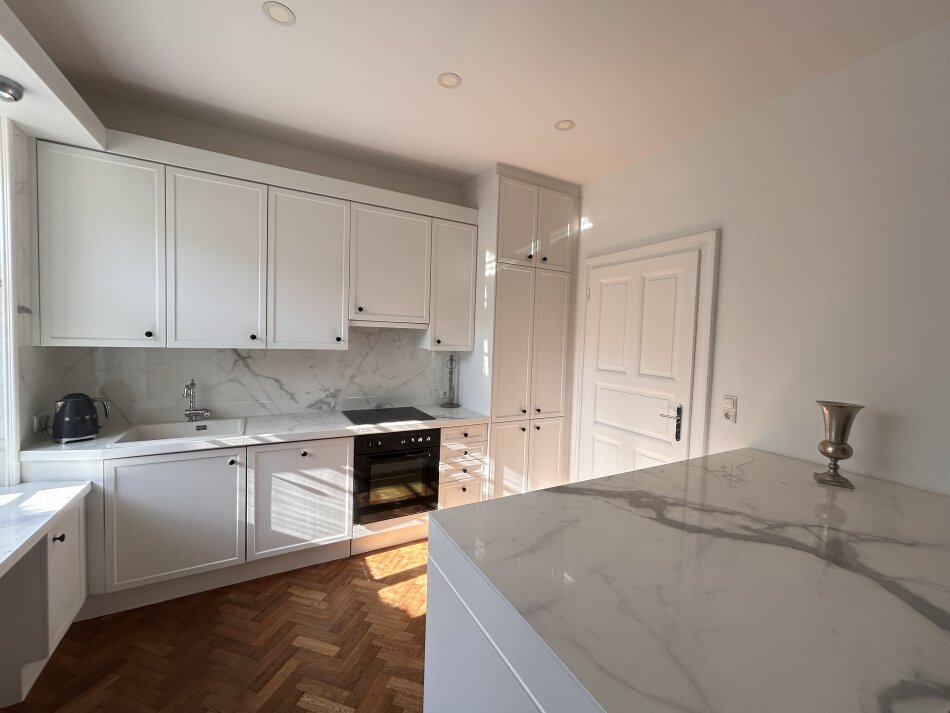 Bereits beim Betreten spürt man die besondere Atmosphäre: Hohe Räume, elegante Details und großzügige Fensterflächen schaffen ein exklusives und lichtdurchflutetes Wohngefühl. Der hochwertig sanierte Altbau-Stil wurde mit modernem Komfort kombiniert, wodurch ein zeitloser und zugleich luxuriöser Wohnraum entstanden ist.