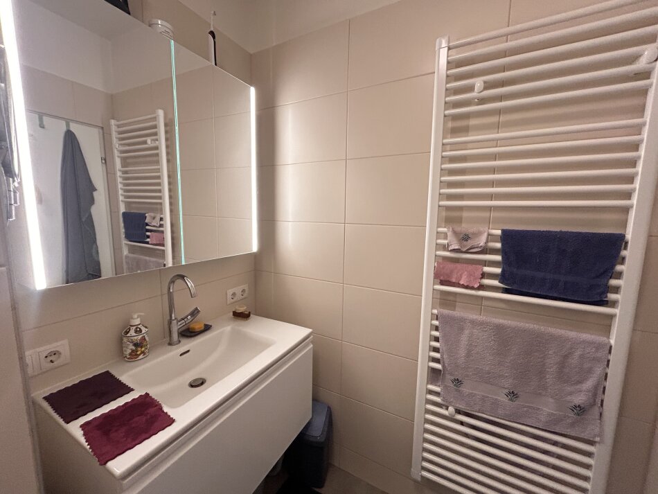 Im Inneren sorgt ein edler geölter Eichenparkettboden für ein warmes, einladendes Wohngefühl. Das moderne Badezimmer verfügt sowohl über eine Dusche als auch eine Badewanne, während das separate WC mit Arbeitstischzusätzliche Funktionalität bietet. Der großzügige Vorraum mit Garderobe und kleiner Abstellkammer sorgt für ausreichend Stauraum und eine klare Raumstruktur.