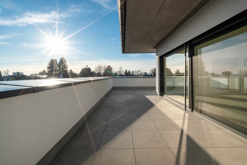 - Ca. 103 m² große Rundum-Terrasse mit Ausrichtung in alle Himmelsrichtungen