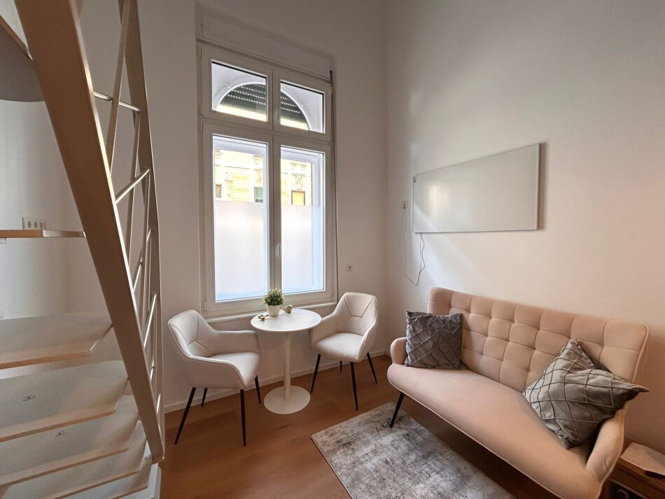 Die Wohnung ist vollmöbliert und hochwertig ausgestattet, sodass Sie sofort einziehen und sich wohlfühlen können. Der durchdachte Grundriss bietet alles, was man für den Alltag benötigt, und schafft trotz kompakter Größe ein angenehmes Wohngefühl.