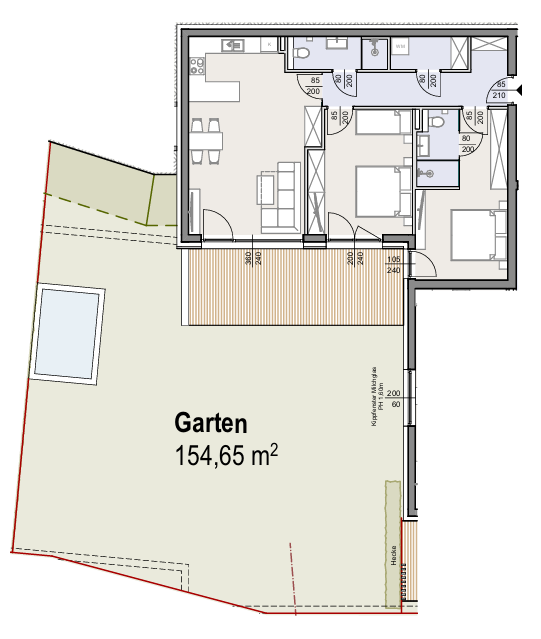 Helle, weitläufige Wohnung mit großer Terrasse und eigenem Garten. Durchdachter Grundriss, moderne Ausstattung und viel Platz für entspannte Stunden im Freien. Ein ideales Zuhause für alle, die Natur und Komfort verbinden möchten.