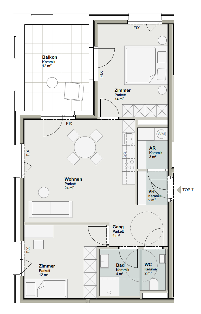 Lichtdurchflutete Wohnung mit offenem Wohnbereich, gemütlichen Räumen und einem sonnigen Balkon. Die moderne Aufteilung bietet viel Wohlgefühl und schafft ein harmonisches Wohnambiente für entspanntes, urbanes Leben.