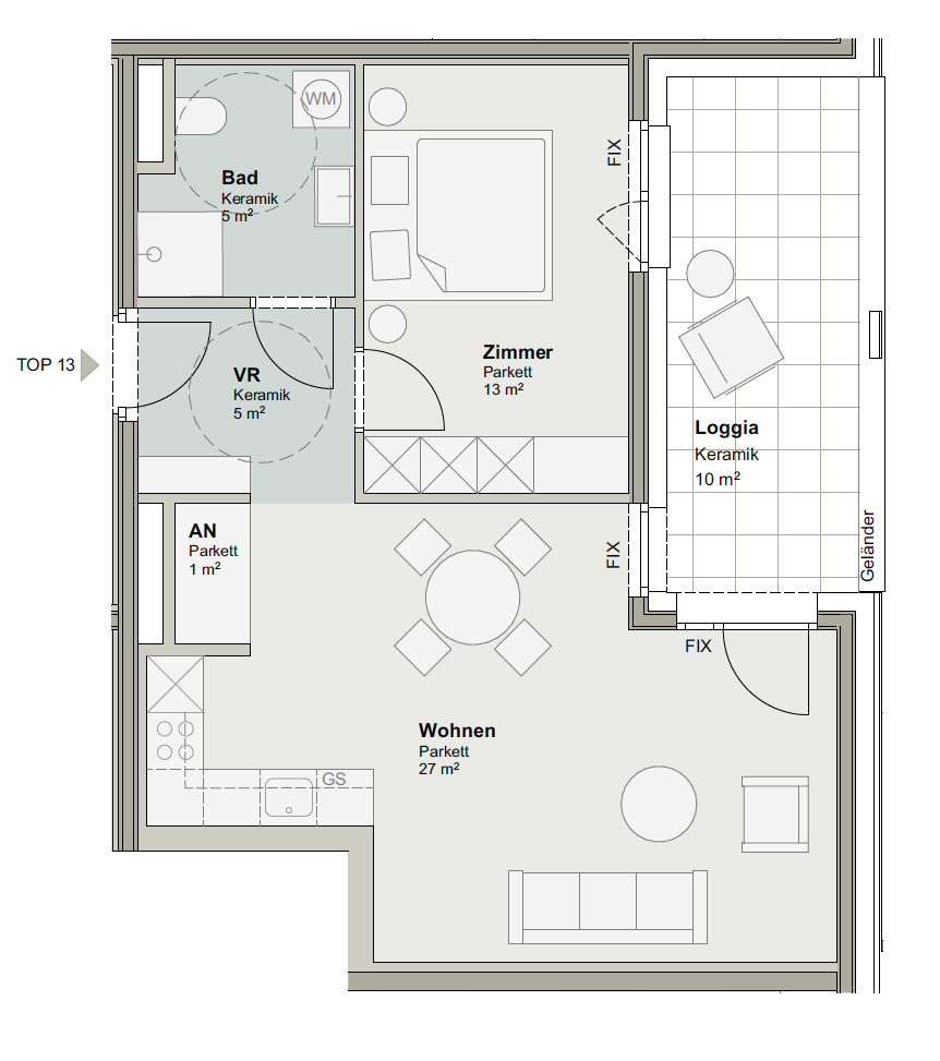 Charmante Wohnung mit offenem Wohnbereich, einem behaglichen Raum und einer geschützten Loggia für entspannte Momente im Freien. Die klare Aufteilung und die moderne Gestaltung schaffen ein angenehmes Zuhause mit wohliger Atmosphäre.